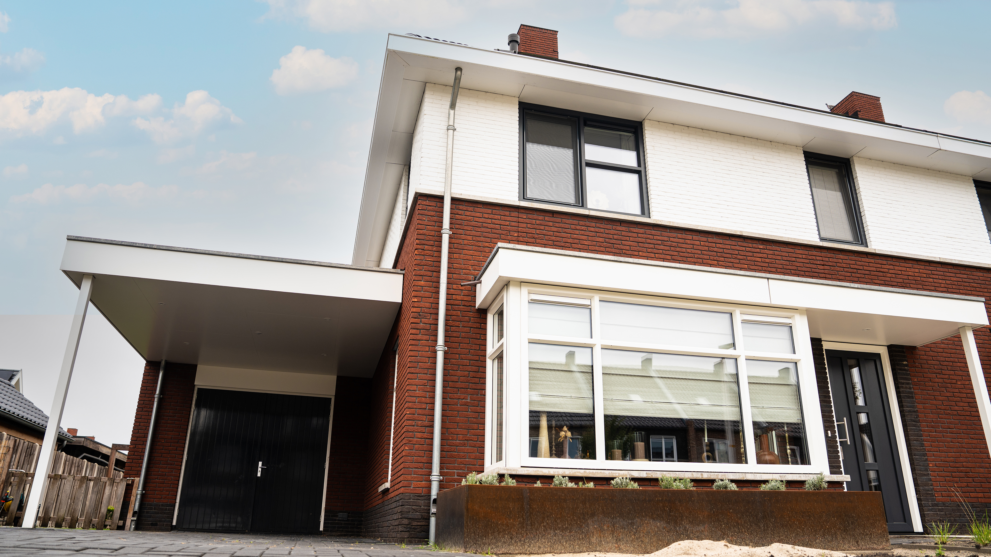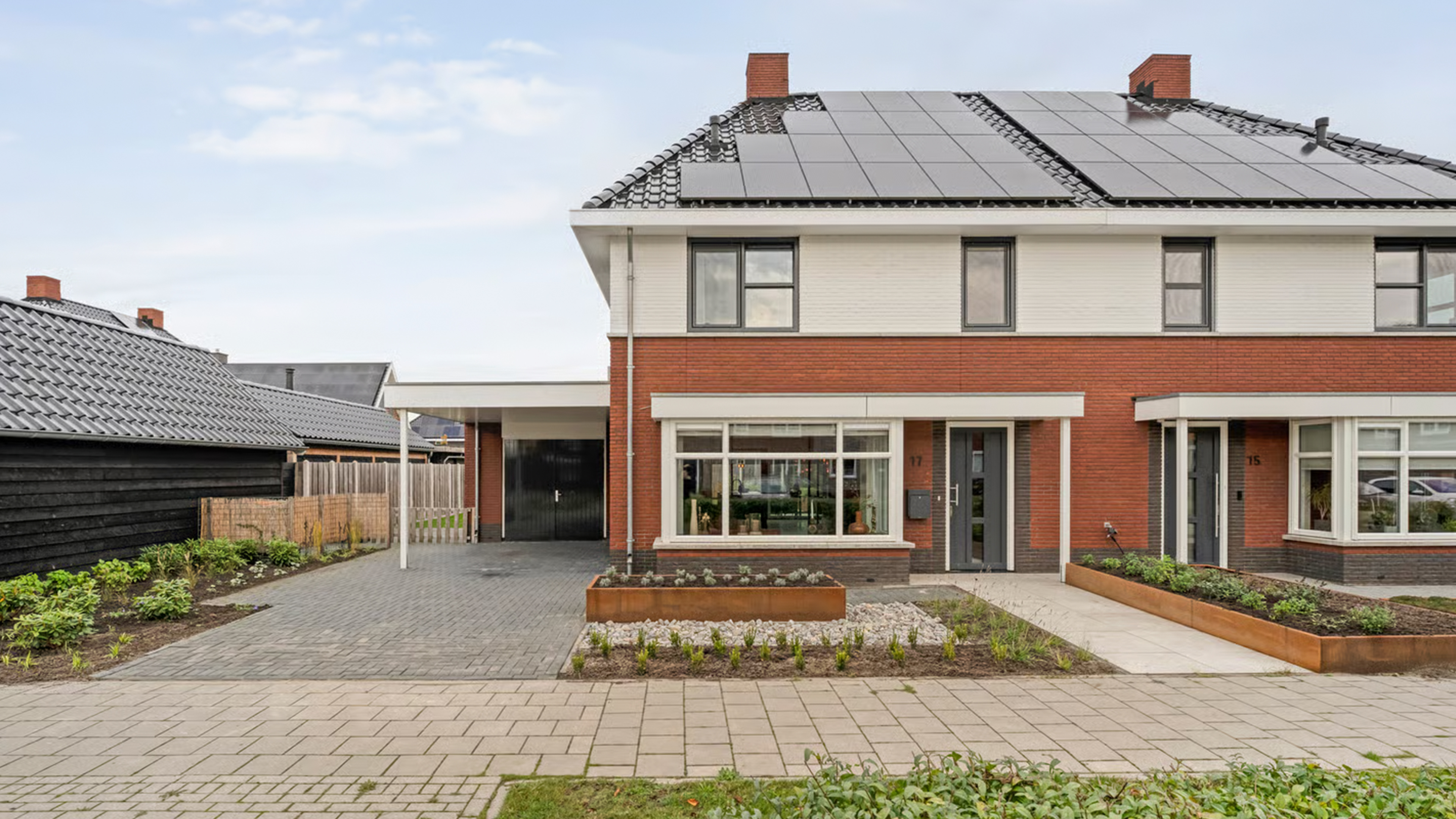 Materialen en afwerking zijn topklasse met kunststof kozijnen en triple glas voor comfort en onderhoudsarm wonen. Parkeren gebeurt onder de carport of op eigen terrein.
